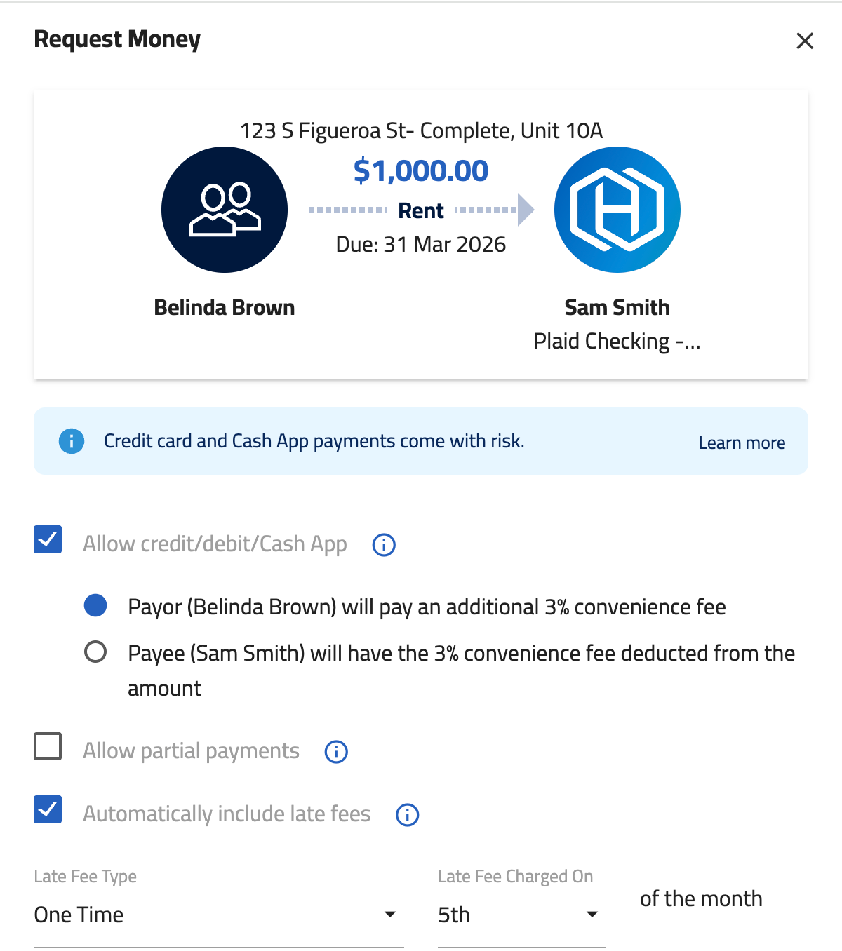 - Cash App is available on the tenant side for rent payments