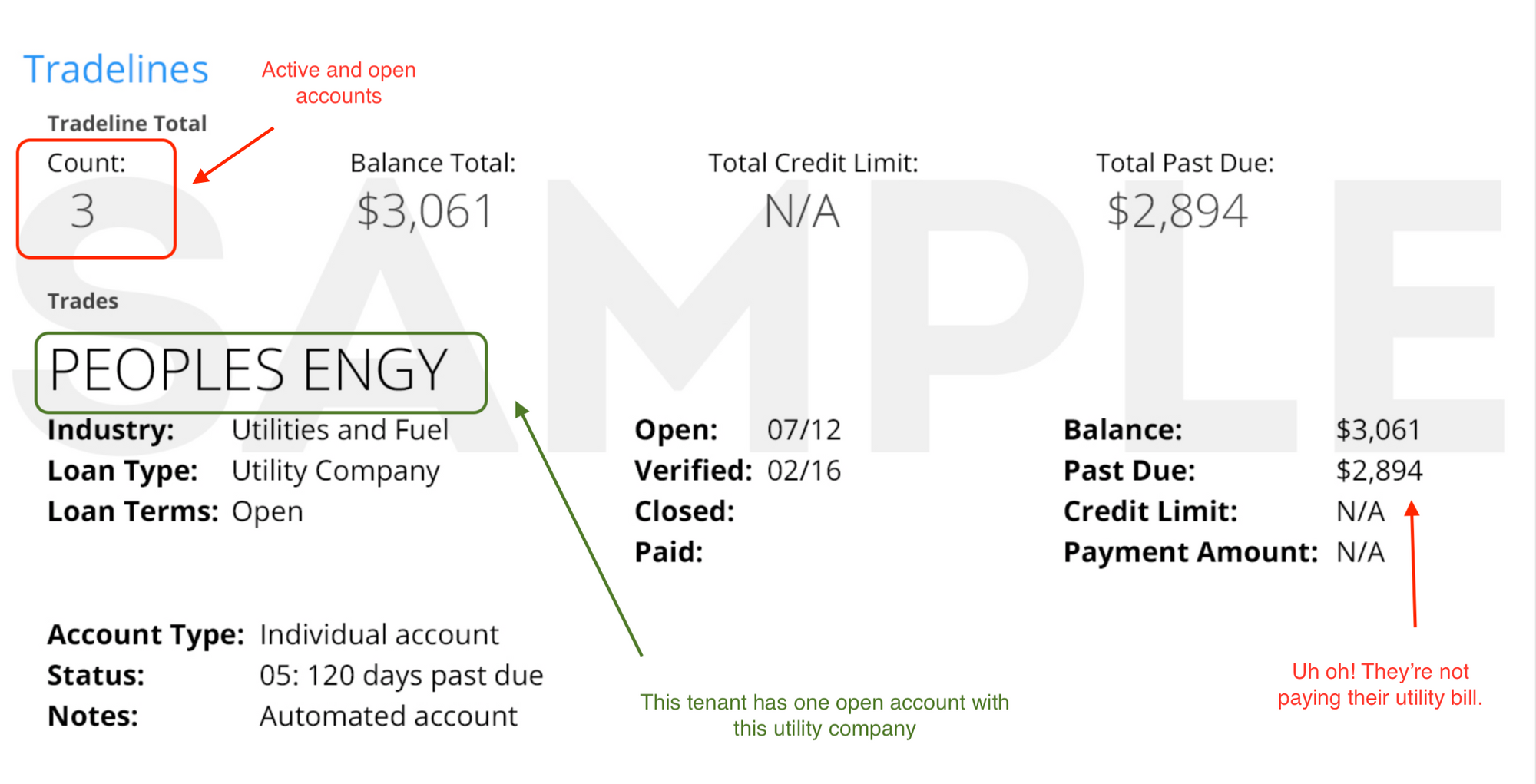 Tradelines are important because they can be different. An applicant with debt due to medical bills is different than someone who has accumulated debt at Nordstrom. Although they could have the same amount of debt, these are two entirely different tenants. Try and give a second glance at the type of debt that the applicant has. Be aware of what the outstanding accounts are and recognize trouble when you see it.