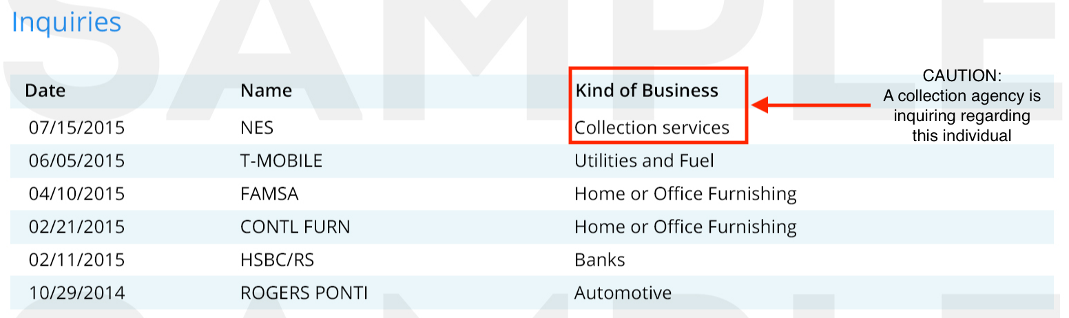 Inquiries show who else is looking at the applicant’s credit. In other words, has their report been pulled for a new automobile loan or a new credit card? And, if they have been applying to many rentals and getting rejected, you will see inquiries from background check screening companies.