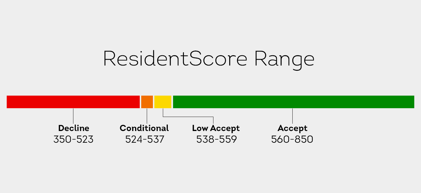 If an applicant has a high score and zero debt, it safe to say you can proceed. Below, you will find the ResidentScore range, illustrating what scores are typically acceptable.