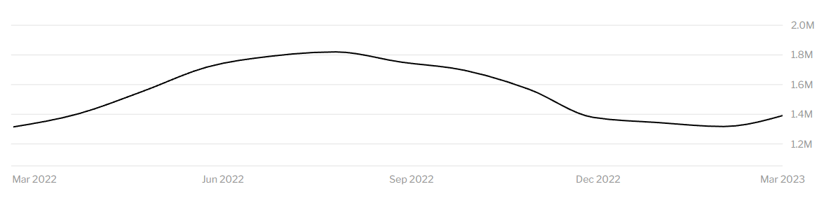 Based on calculations on Redfin and MLS, March saw 1.39M homes for sale, which is a 5.8% increase in housing supply YoY.
