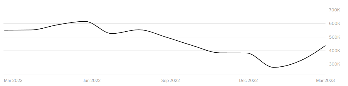The number of homes sold in March was down by 20.6% YoY, according to Redfin, despite a steady increase since February.