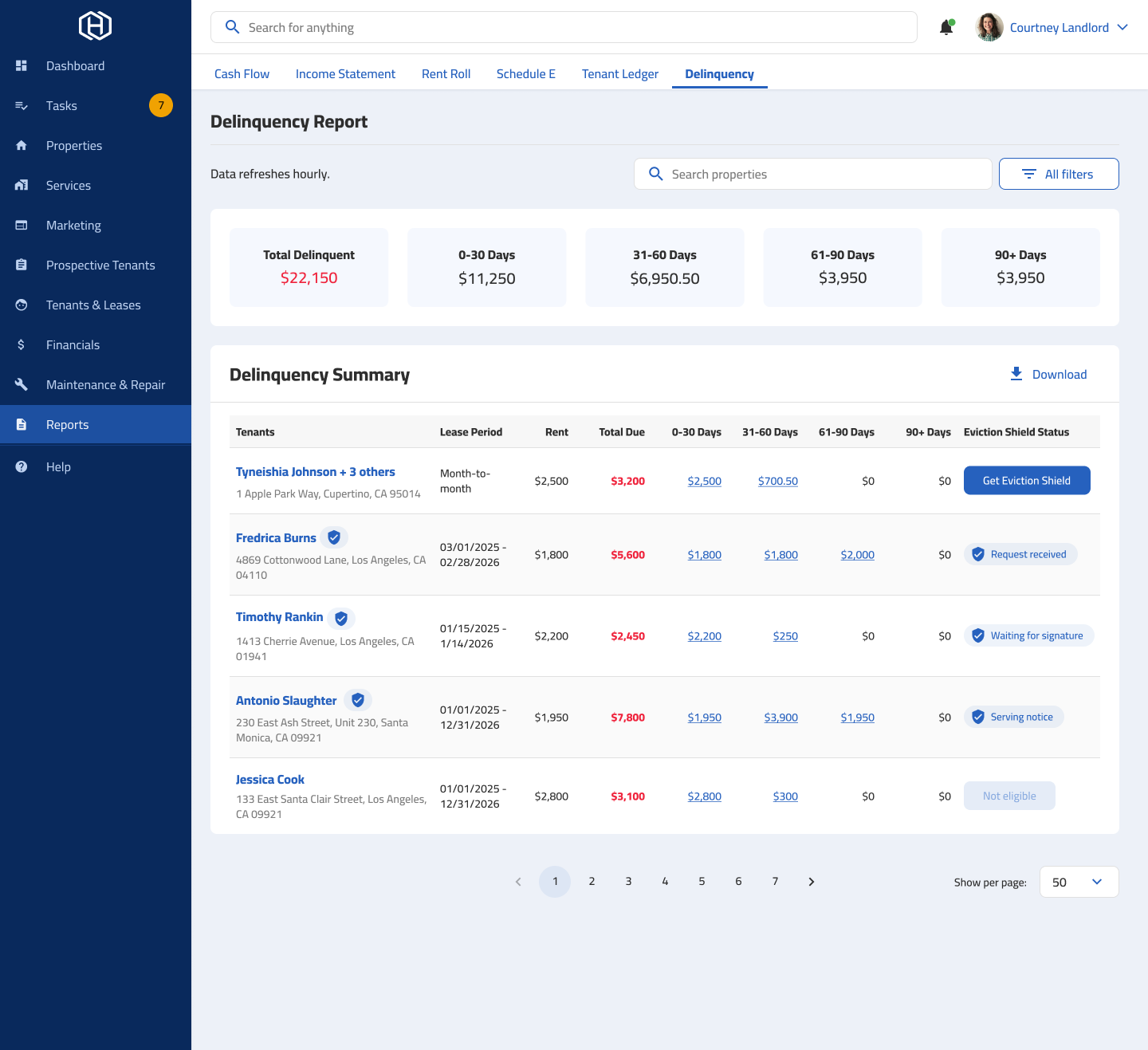 For eligible properties, Delinquency Reports surface Eviction Shield status directly within your account. This makes it easier to understand whether your rental qualifies for additional eviction support if rent delinquency continues.