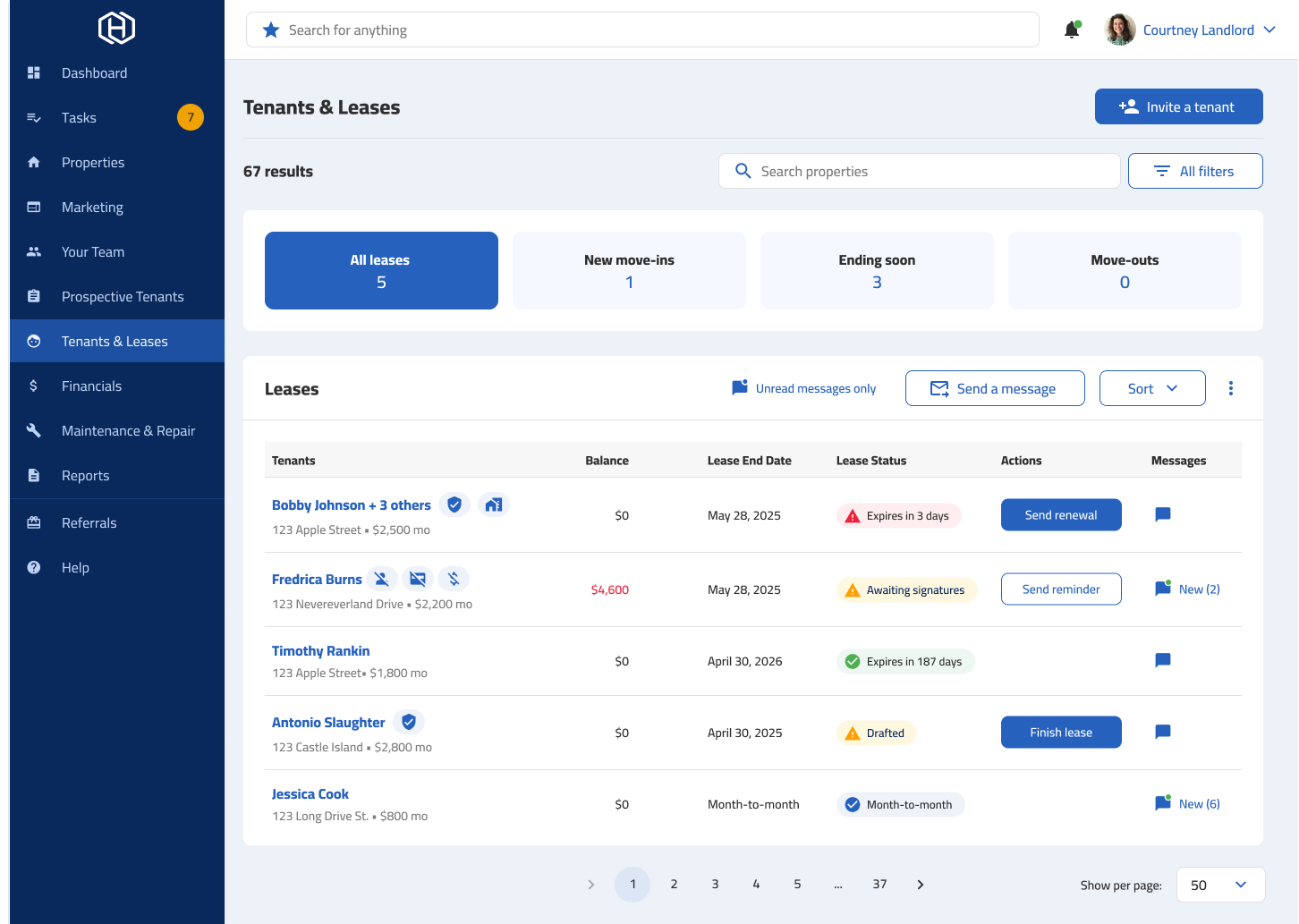 One of the most important parts of lease management is having clear visibility into what is happening across your rentals. Rental owners told us they wanted faster access to tenant balances, lease status, and key details without having to click into multiple screens. So we made meaningful improvements to give you a better summary view right when you open the tab.