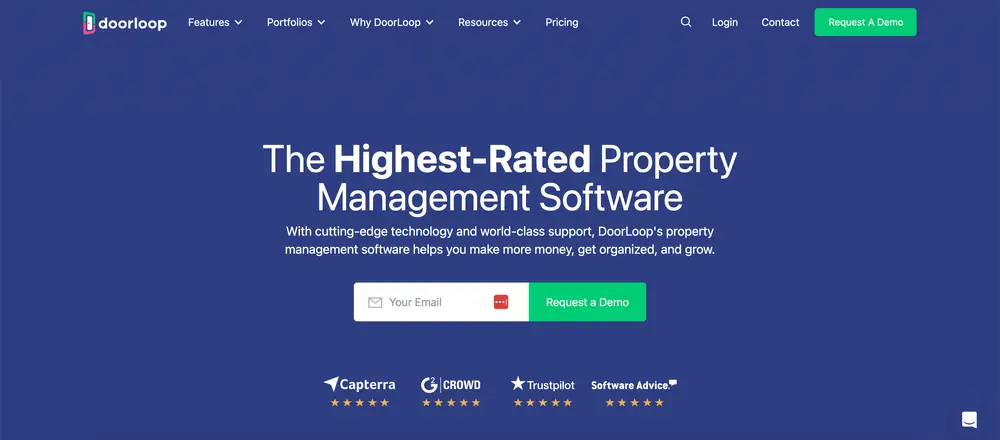 DoorLoop provides property managers with a powerful set of tools to automate tasks such as rent collection, lease tracking, and maintenance requests. This software is particularly known for its easy integration with other tools and platforms, allowing property managers to streamline operations without switching between multiple apps.